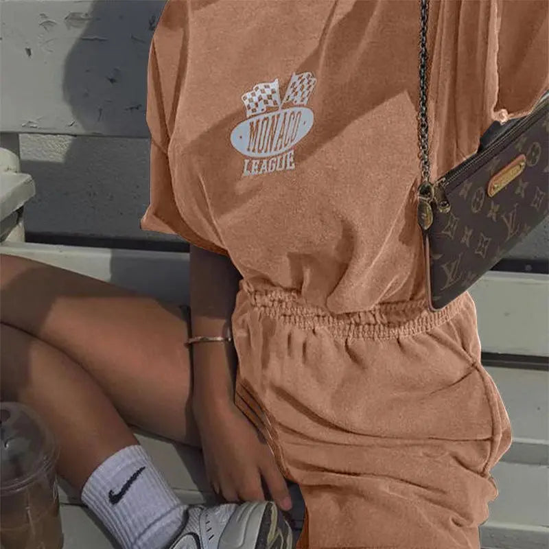 Women's Two Piece Graphic Print T Shirt And Shorts Outfit