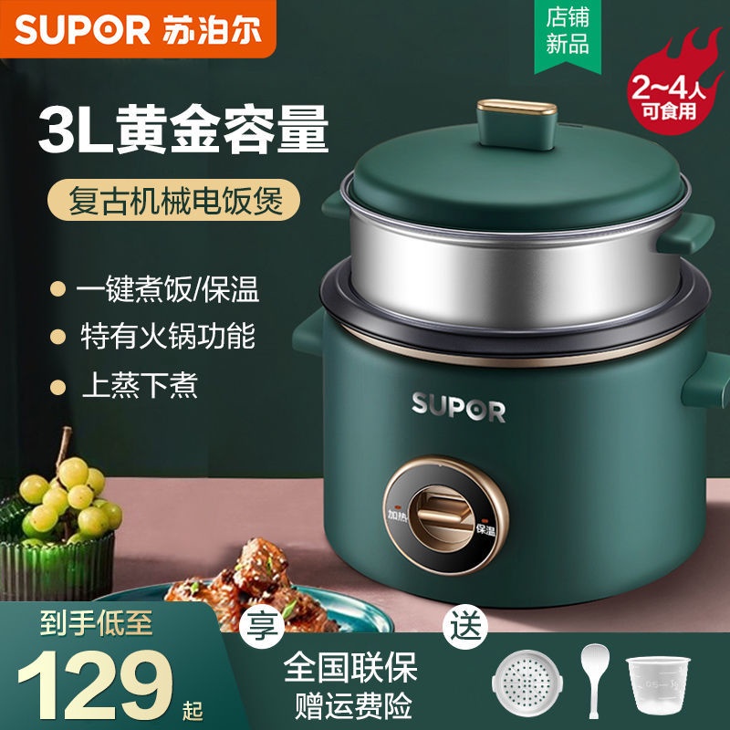 【精品】蘇泊爾電飯鍋帶蒸籠3升智能老式復古蒸煮家用大容量2-4人電飯煲