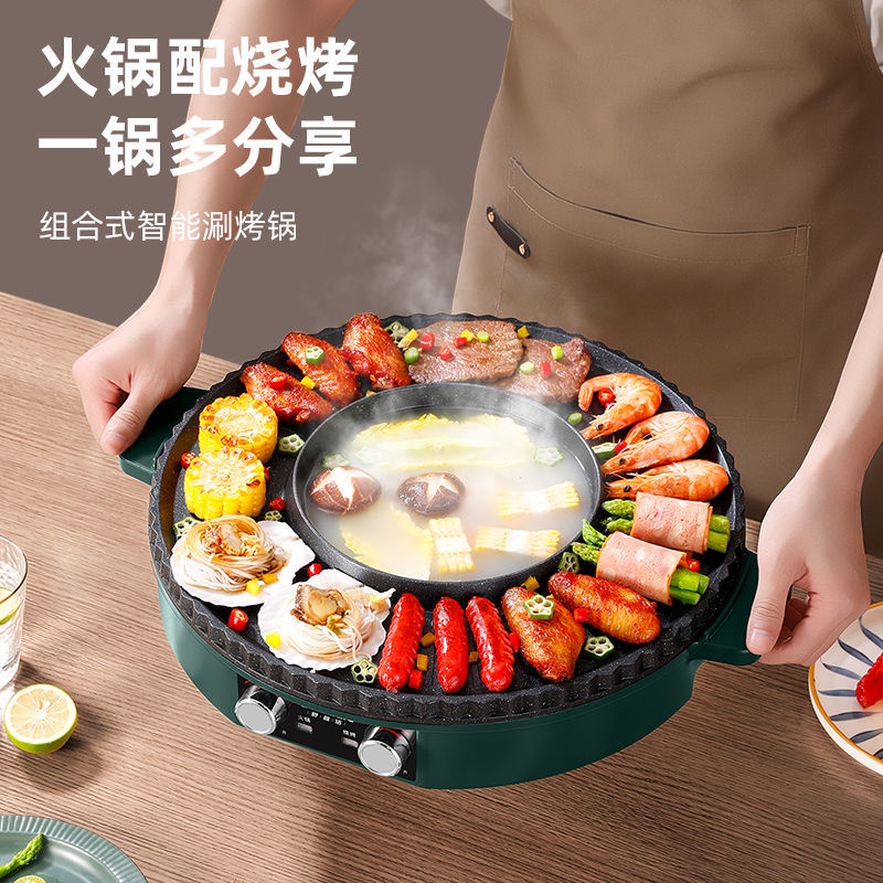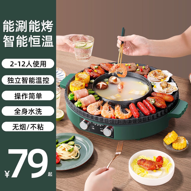【精品】電燒烤爐鴛鴦鍋火鍋涮烤2-12人家用壹體鍋圓形烤肉機不粘鍋烤肉鍋