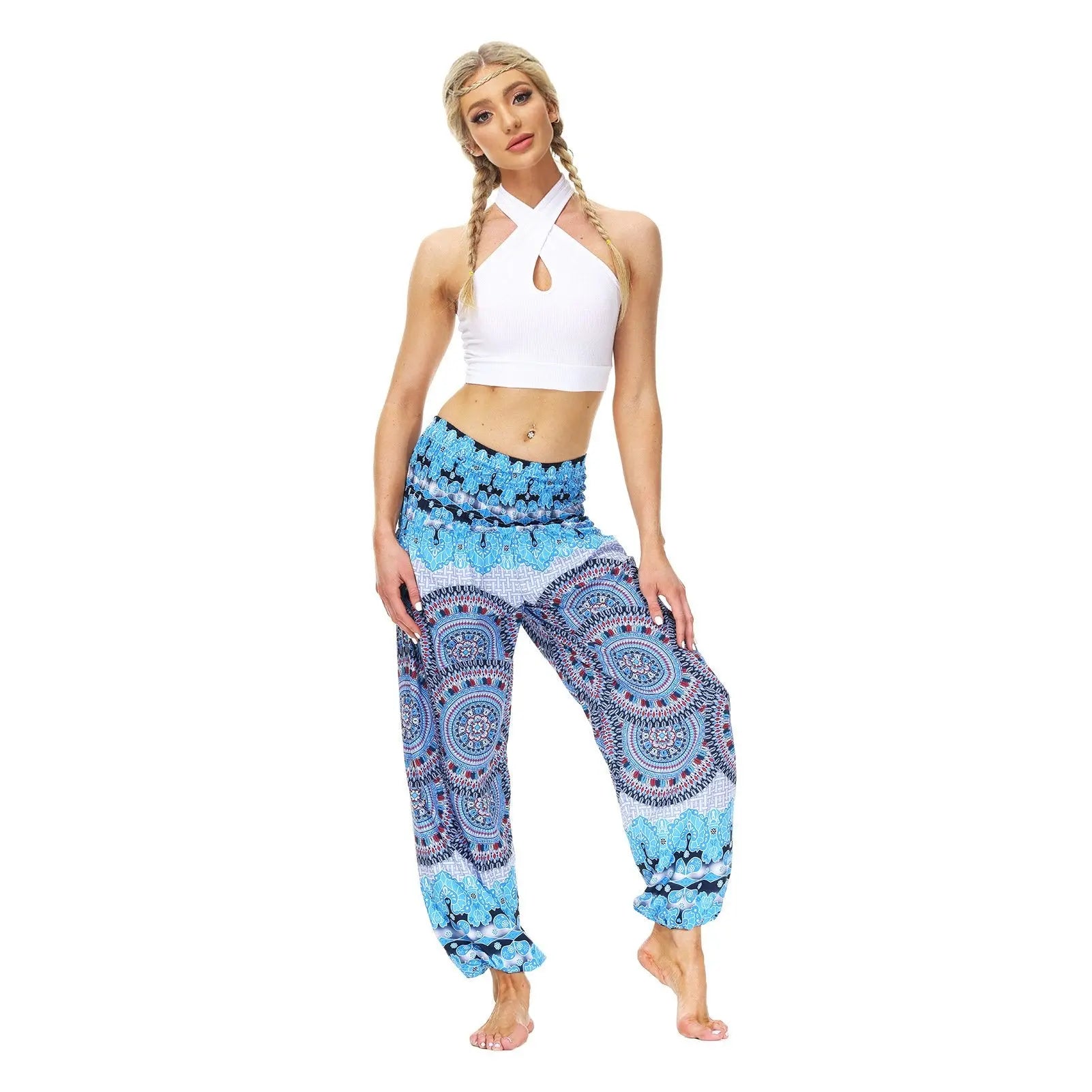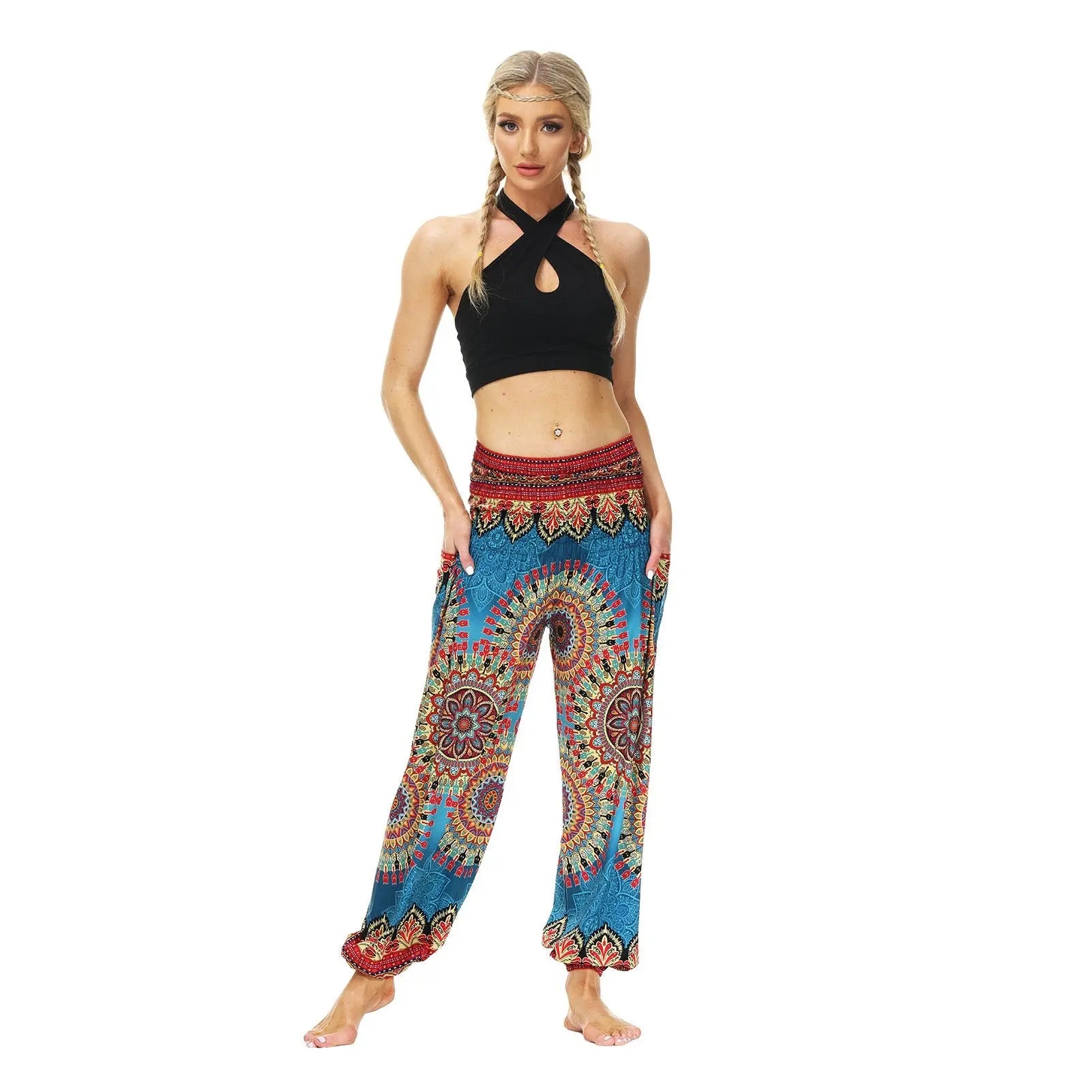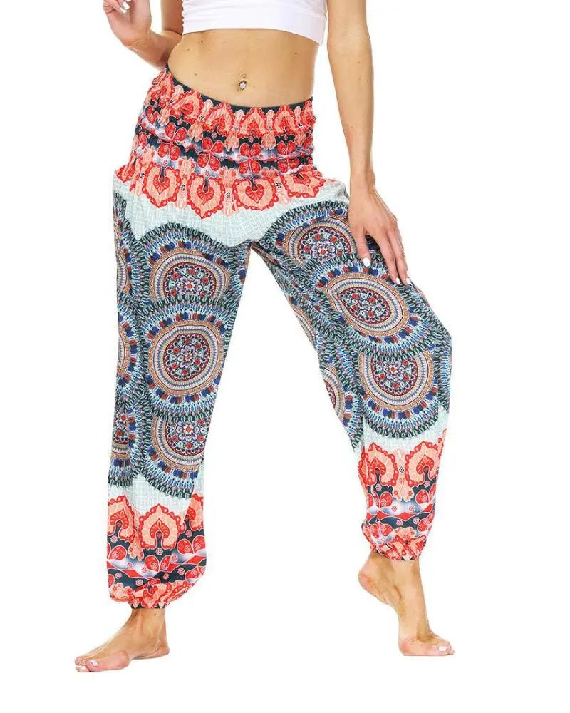 Women's Tribal Print Elastic High Waist Yoga Harem Pants With Pocket