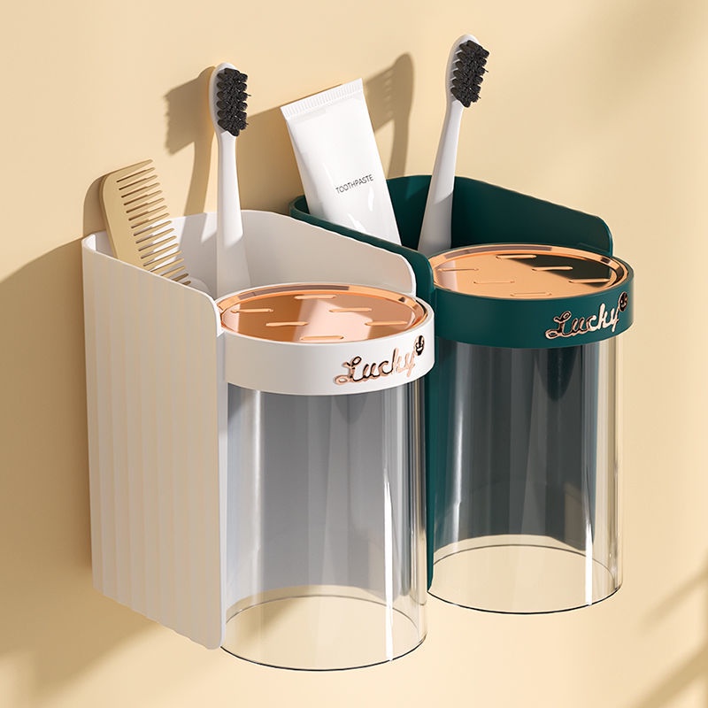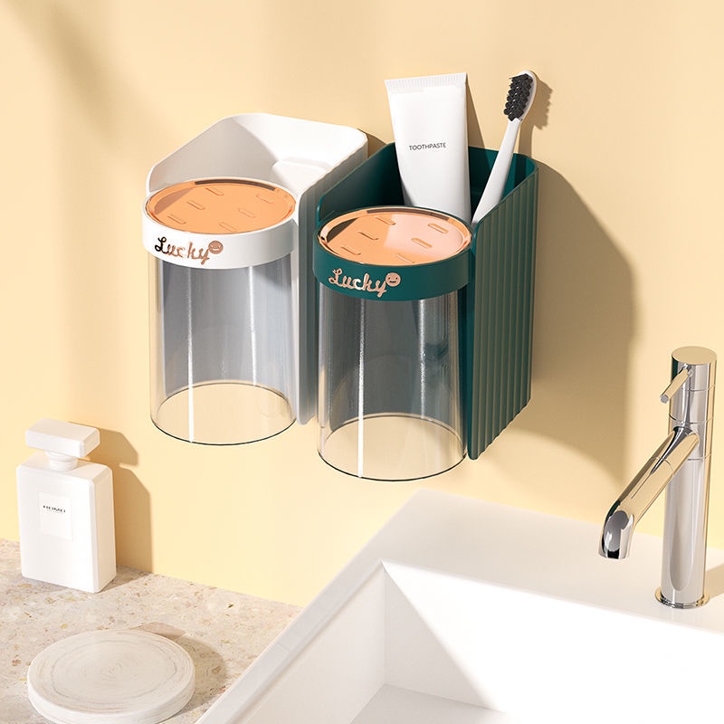 [精品]牙刷架免打孔網紅家用刷牙杯漱口杯套裝衛生間壁掛電動牙刷置物架