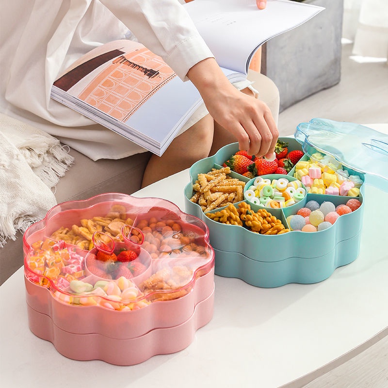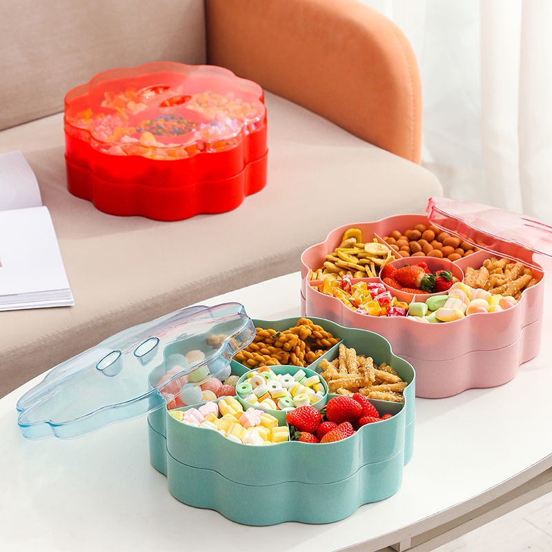[精品]創意分格帶蓋收納盒糖果盤家用現代客廳茶幾過年零食瓜子幹果盤子