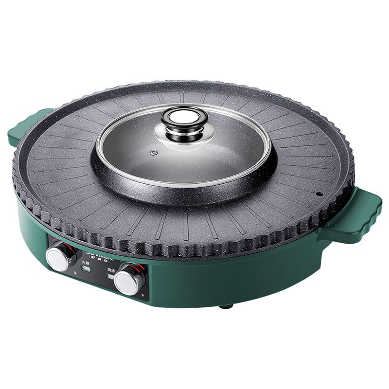 【精品】電燒烤爐鴛鴦鍋火鍋涮烤2-12人家用壹體鍋圓形烤肉機不粘鍋烤肉鍋
