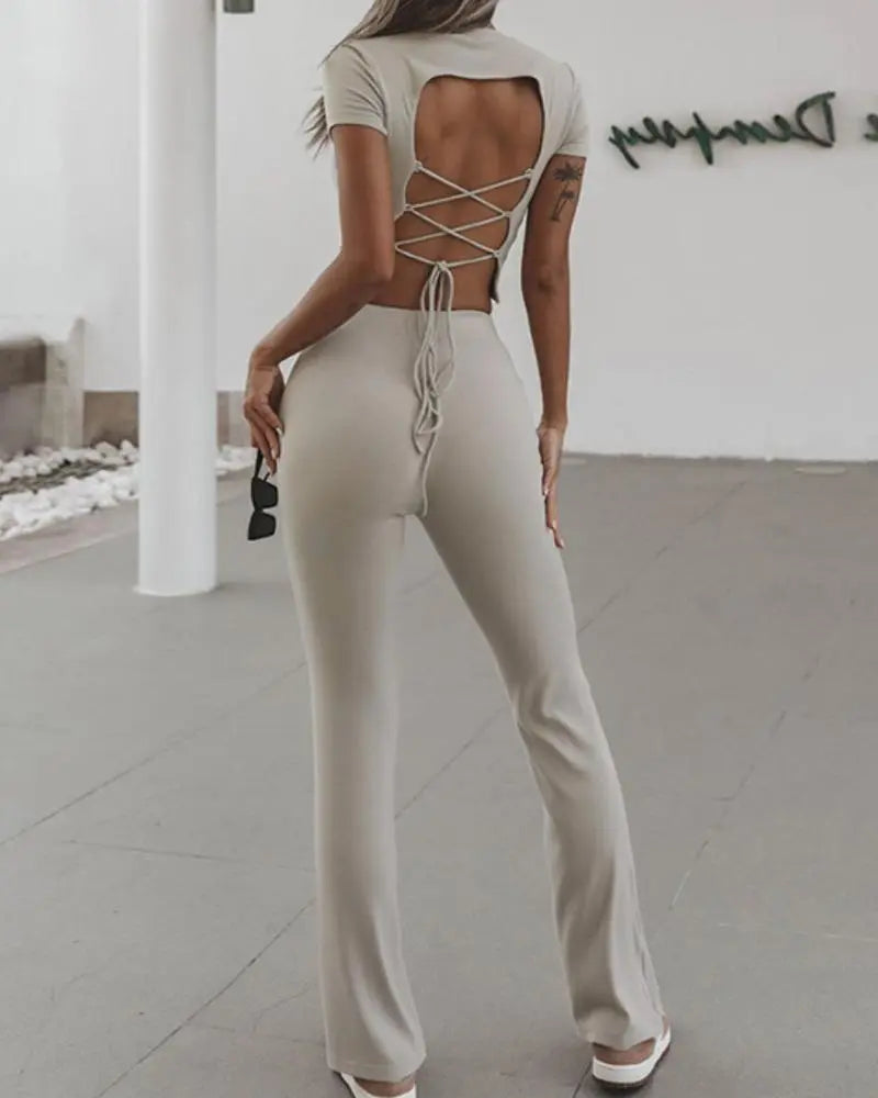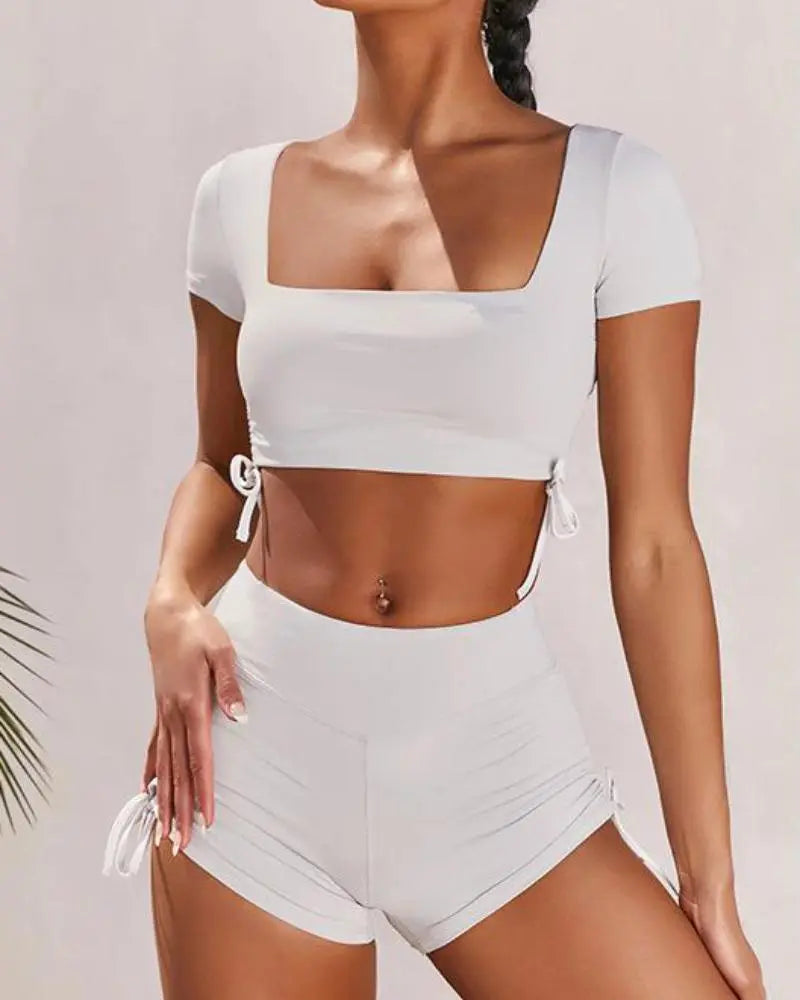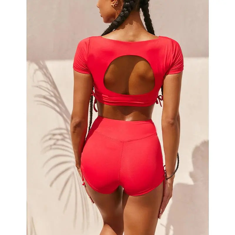 Women's Two Piece Backless Crop Top And Shorts Workout Set