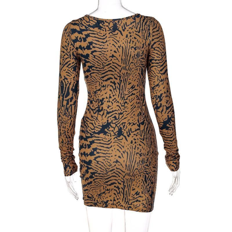 Women's Tiger Striped Tie Knot Front Mini Bodycon Dress