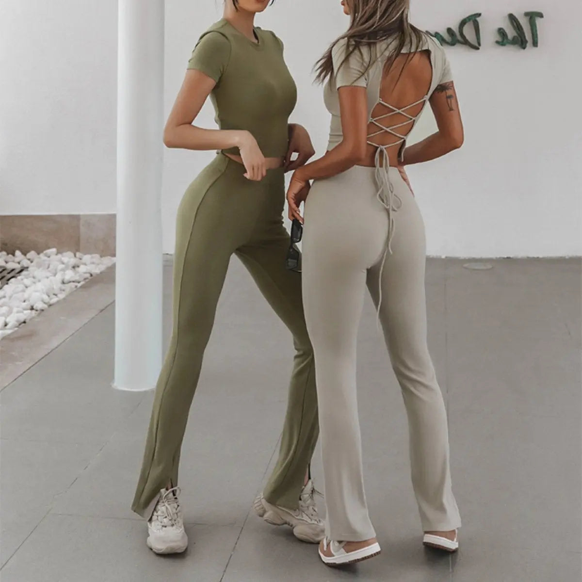 Women's Two Piece Backless Bandage Sweatshirt Long Pant Outfit